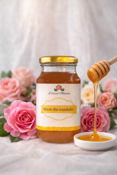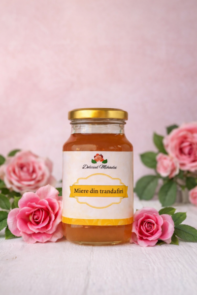 Miere polifloră 80%, petale de trandafiri Rosa Damascena 20%